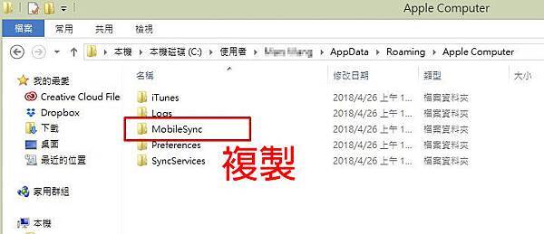 3.將"MobileSync"資料夾 搬移到 你指定的空間