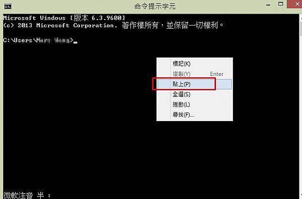 8.在命令提示字元 按右鍵 "貼上" 完成後會看到已建立 就可以了