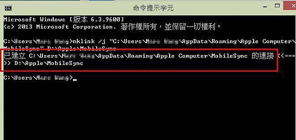 mklink /j "C:\Users\你的電腦名稱\AppData\Roaming\Apple Computer\MobileSync" D:\Apple\MobileSync